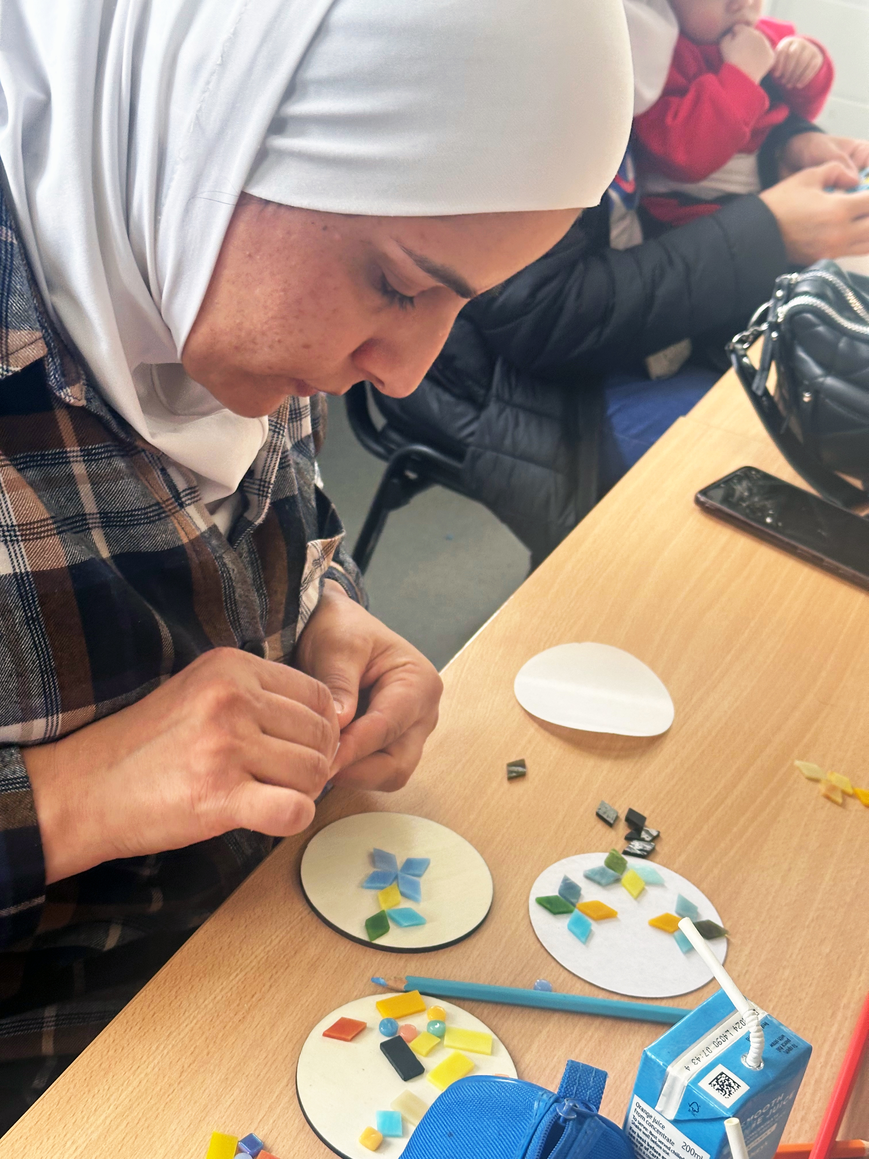 During the sessions the group reminisced about various Arabic arts and crafts activities and techniques they had all tried growing up in Syria, these included a wax fabric painting technique