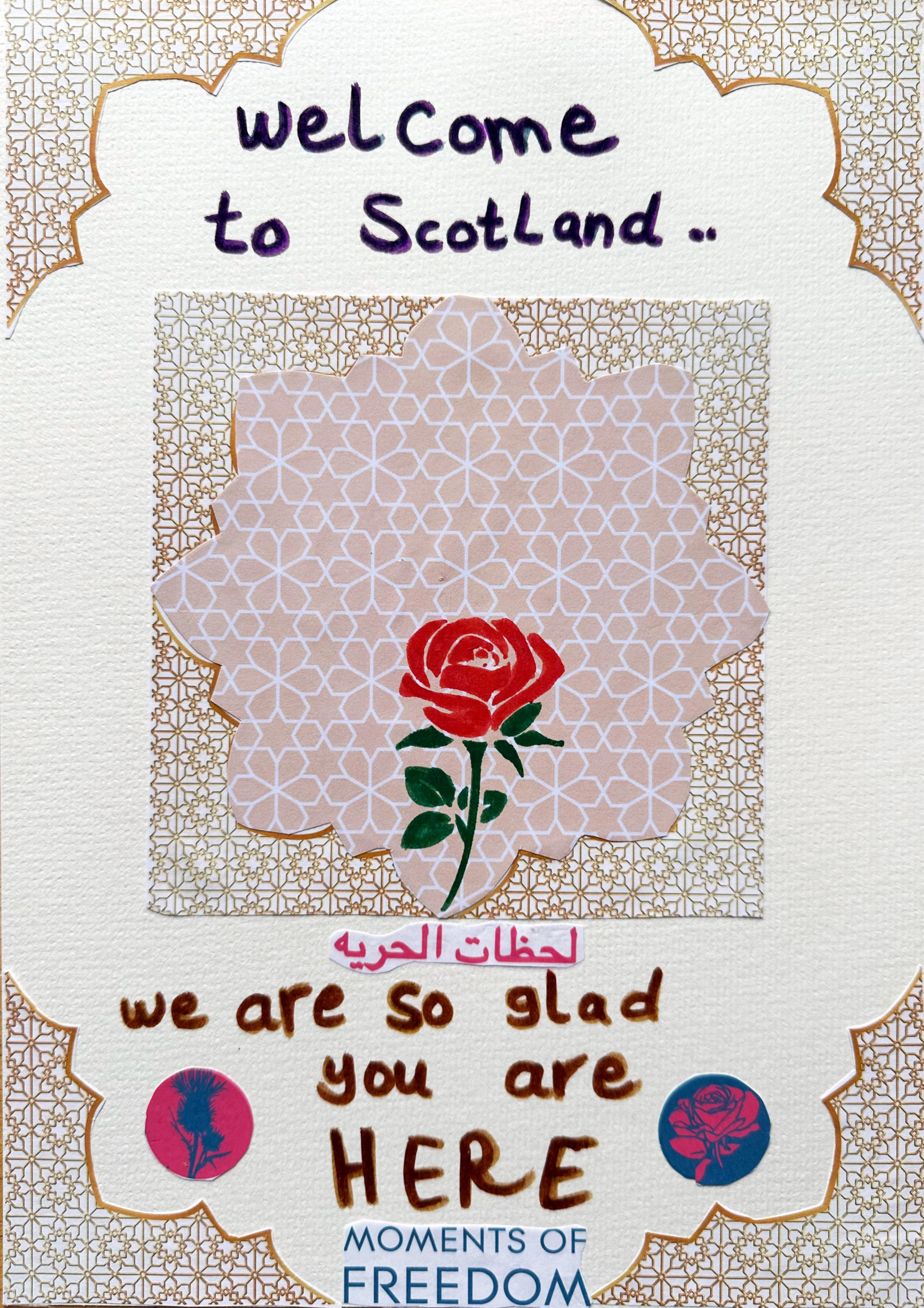 “We chose this title ‘Welcome New Scots’ to show the arrival welcome for people, to show them how we passed all the barriers and where we are now to give them a good and comfy feeling