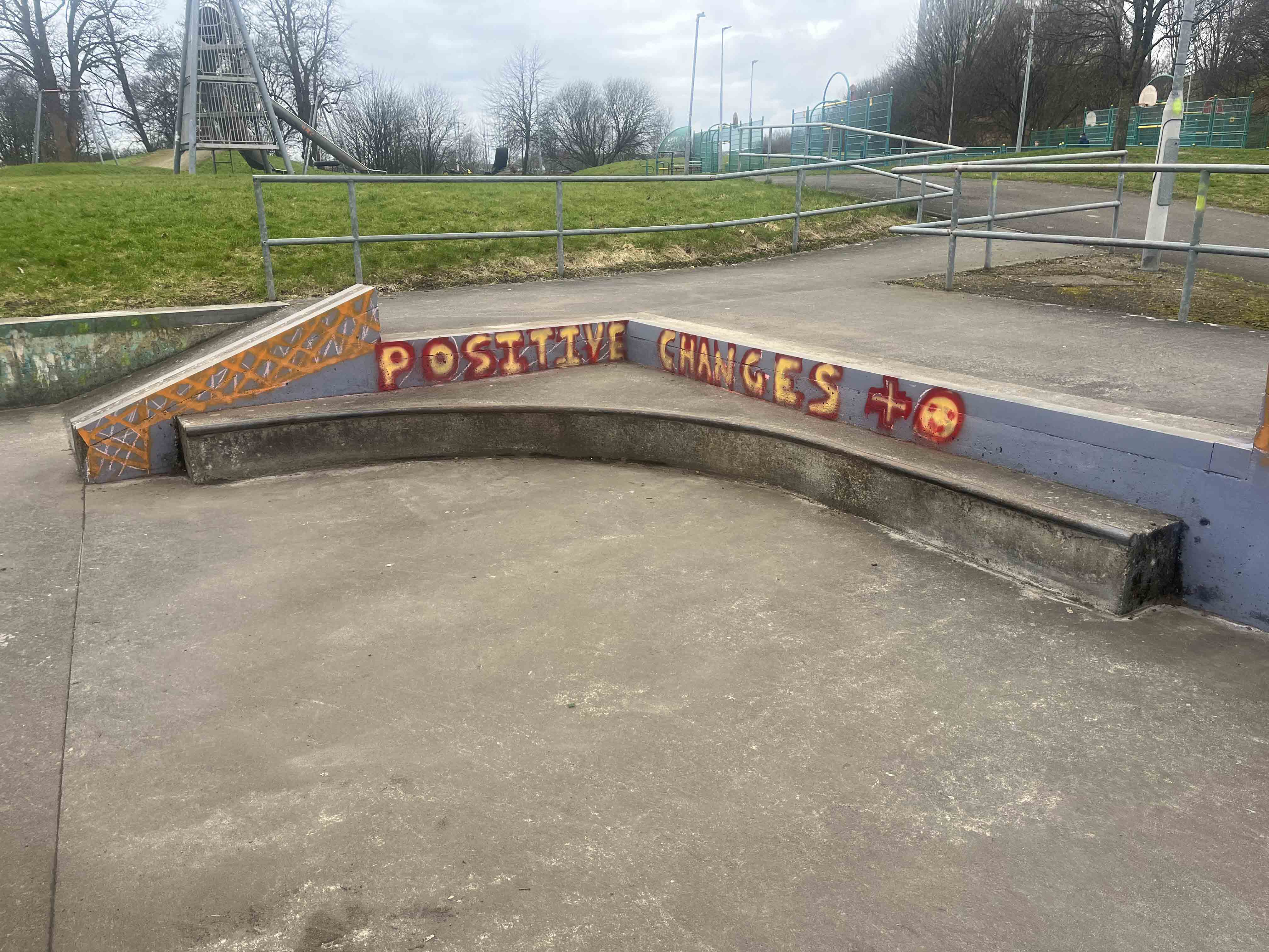 In just four days, the skate park transformed from a barren, mossy area to a bright space spray-painted with kindness, cleared of all the litter and mess we first encountered.